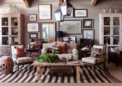 Classic, timeless, comfortable, natural and eclectic, all of which I am a fan. I love how he uses antiques, bamboo, old books, sea shells, red, white, blue and black. Baskets and wicker bottles, domes, palms, lilies, Ivy and ferns. Nests and eggs, turtle shells and orchids. I love the romance and the love of nature. It's not trendy but timeless, as you can see that the last images are maybe 10 years old perhaps and look just as wonderful as the first images. This is the look that best describes my design style. Enjoy, Heidi